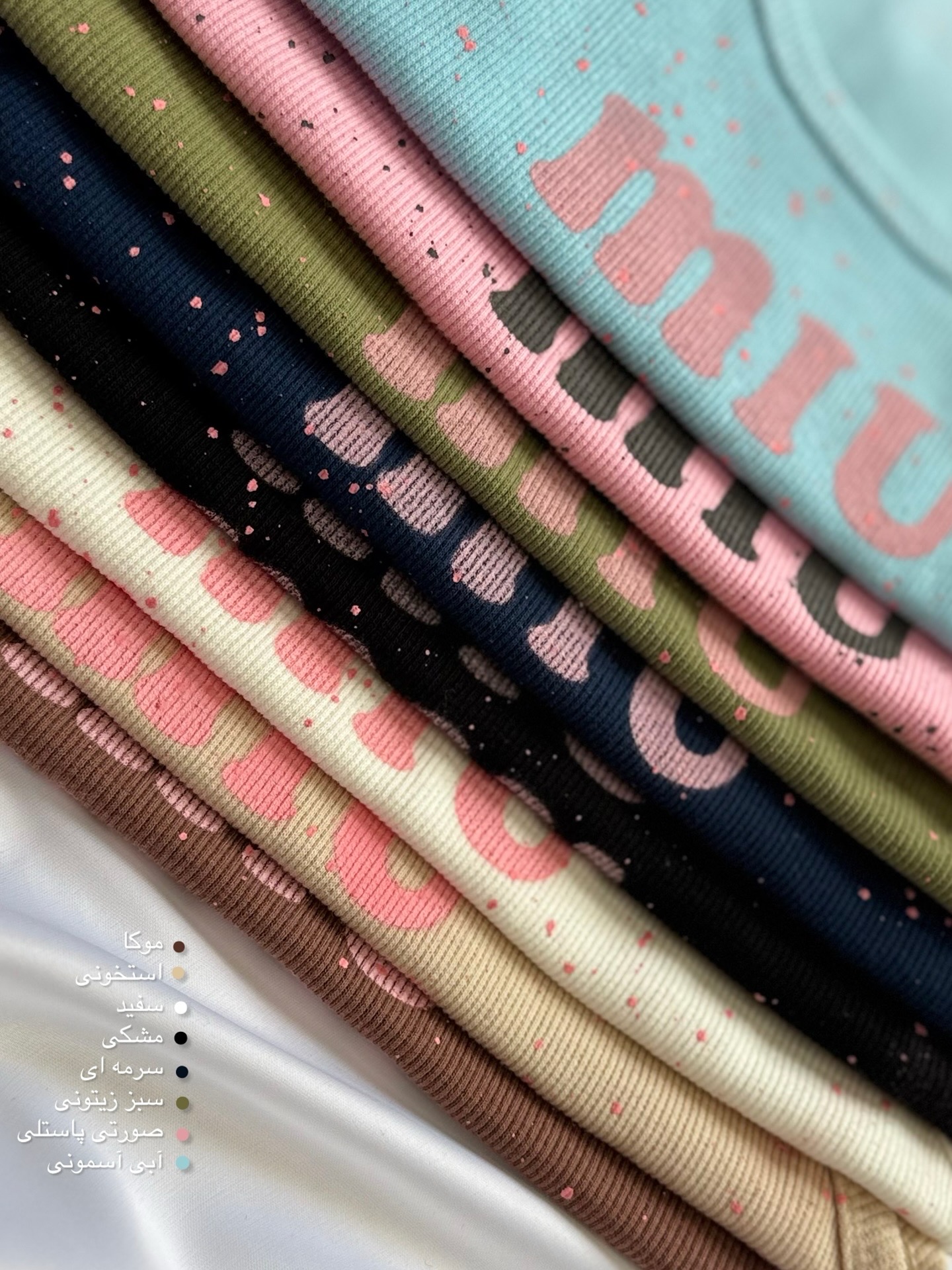 / موکا / استخونی / سفید / مشکی / سرمه ای / سبز زیتونی / صورتی پاستلی / آبی آسمونی